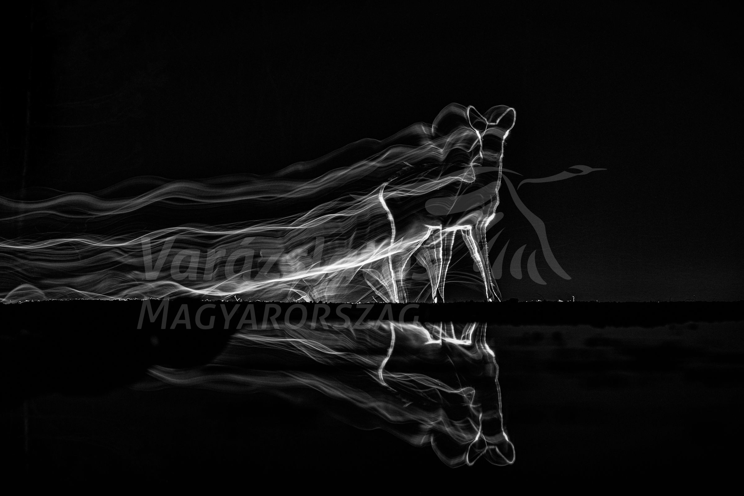 Az őzek télen rendszeresen látogatják azt a kis rétet ahova egy les készült. Így az állatok zavarása nélkül lehet figyelni az éjszakai életüket. Gondoltam a megszokott képektől kicsit eltérő fotót szeretnék készíteni. Persze ez rizikós mert ha nem pont úgy mozog az állat vagy nem jó az expozíciós idő amit kiválasztottam, lehet egész éjjel nem sikerül egy jó fotót sem készítenem. Ez alkalommal szerencsém volt az őz szép egyenletesen sétált majd megált, igy sikerült ezt a különleges fotót elkészítenem.