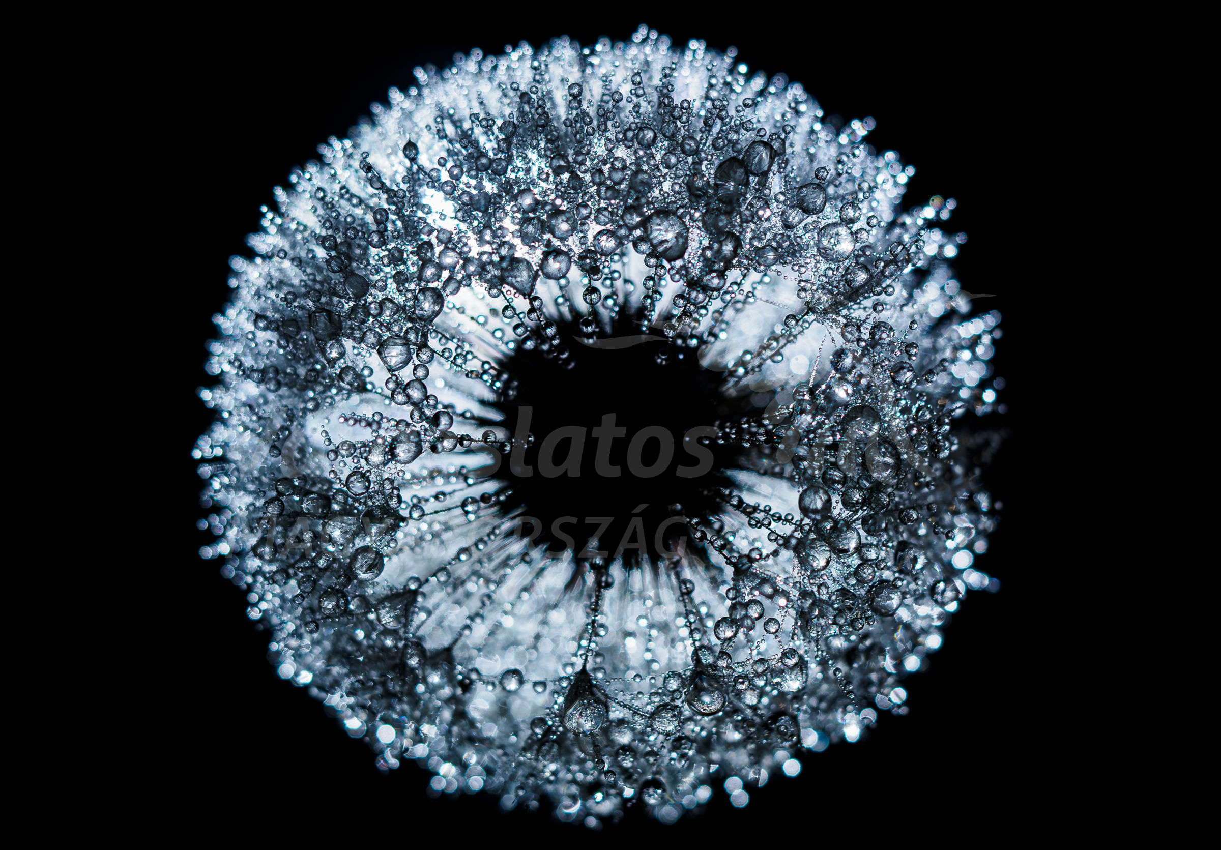 Ezt a pitypangot egy októberi estén találtam a vízparton, amelyet a páracseppek apró gyöngyökként vontak be. A felvételt felülről készítettem, egy kis olvasólámpával megvilágítva, hogy kiemeljem a részleteket. A fény és a harmat együttállása egy szem íriszére emlékeztető látványt hozott létre eredményképp.