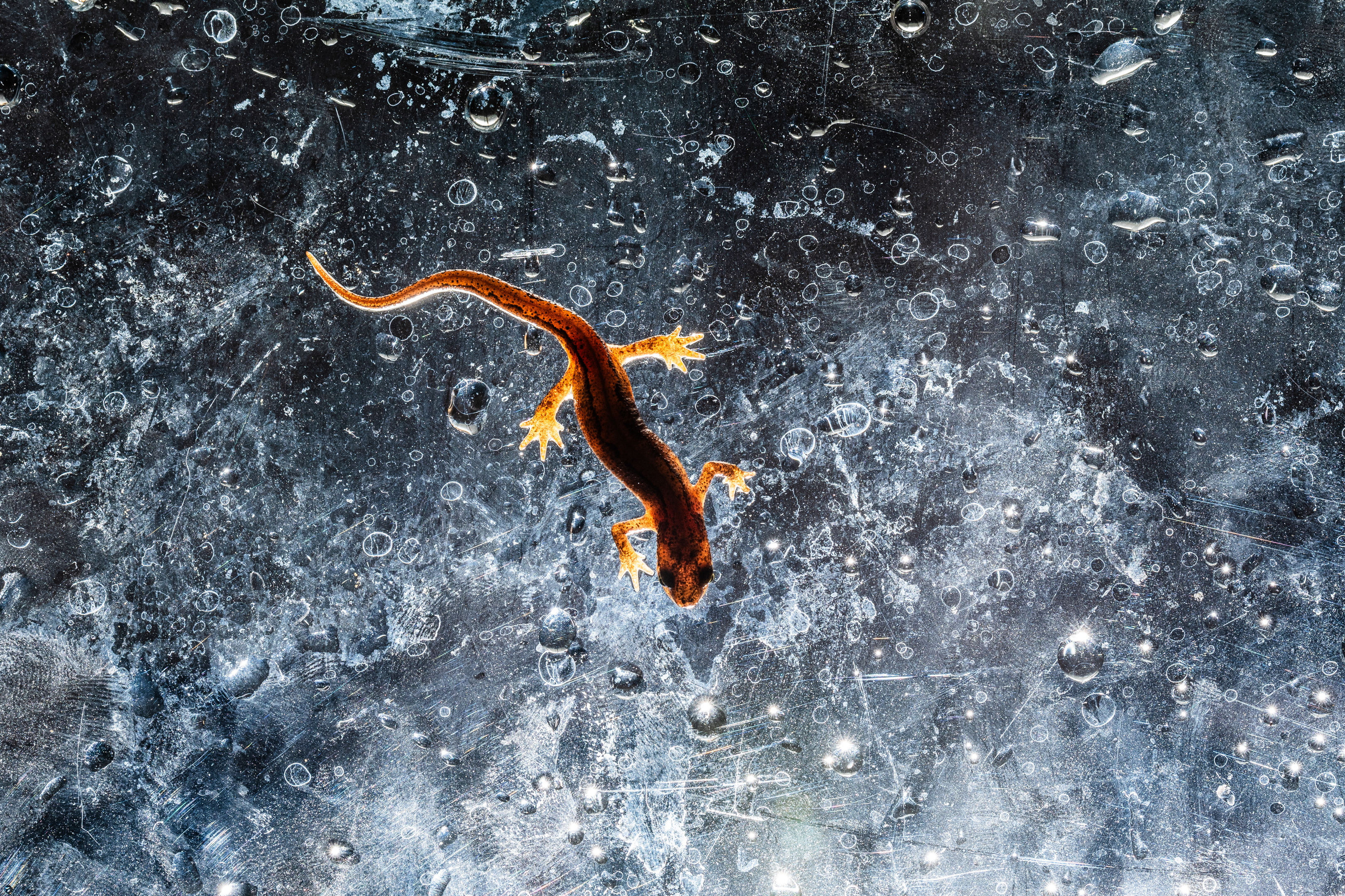 Tarajos gőte oson végig a bepárásodott ablakon a télikertben. Egyik este, amint a hideg elől jól eldugott növényeimet rendezgettem a télikertben, arra lettem figyelmes, hogy velem szemben a párás ablakon egy síkos árny kúszik végig. Kint már jócskán kékóra uralkodott, így először nehezen jöttem rá, hogy ki is lehet az a hosszú alak, aki keresztben elhelyezkedett az üvegen. Végül megvilágítottam, majd örömmel konstatáltam, hogy kertem egyik lakója egy ifjú tarajos gőte, akit bizonyára az áprilisi zivatarok csaltak elő rejtekéből. Sietve kamerát ragadtam, majd mielőtt sietve elslisszolt, még pár fotót sietve készítenem róla. A tarajos gőte Európa szerte védett faj.