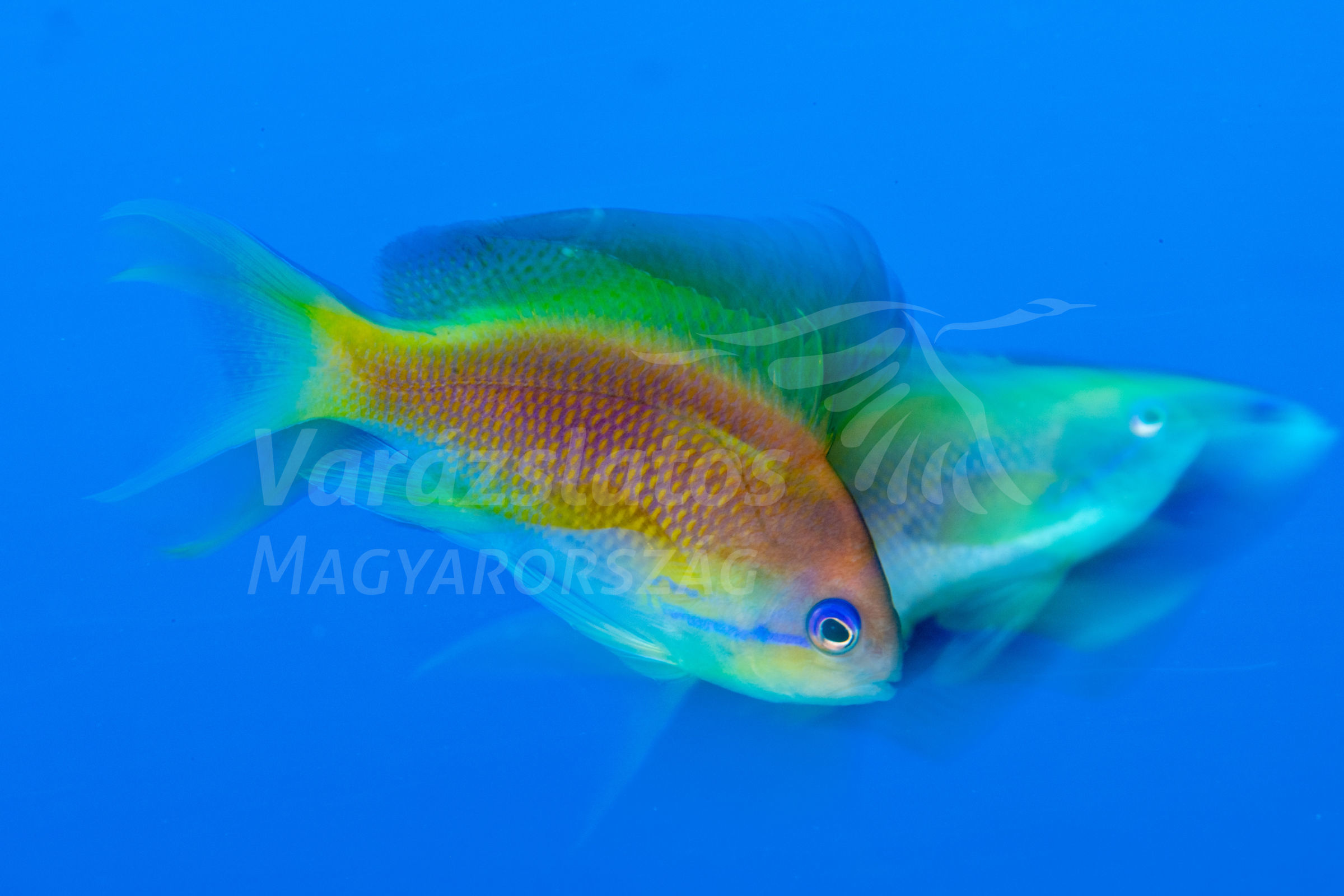 A tenger mélyén semmi sem állandó — még a legszínesebb halak is egy szüntelen mozgás sodrásában élnek. Ez a fotó egy pillanatnyi táncot örökít meg, ahol az Anthias egyetlen mozdulata színkavalkáddá olvad. A hosszú expozíció és a vaku fagyasztott villanása révén a mozgás festményszerű lenyomata marad a képen.