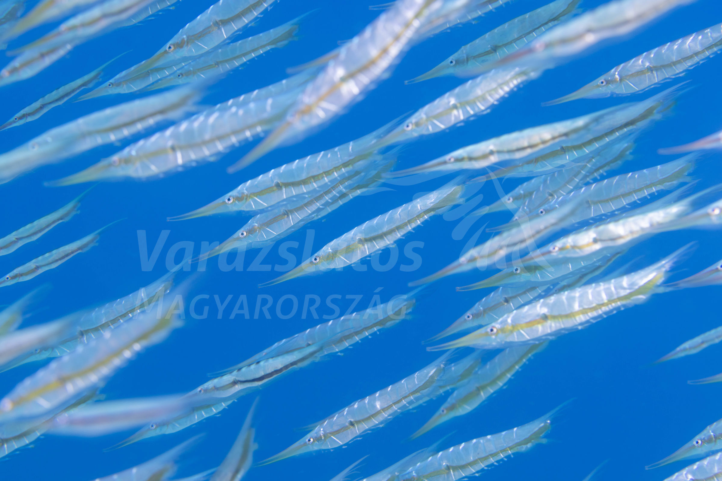 Ezt a képet egy csoport rákhalról, itthon inkább ismertebb nevén késhalról készítettem, amint a zátony körül úsztak. Általában függőlegesen úsznak, úgy keresik táplálékukat a homokban / tenger fenekén. A képen kicsit megdőlve láthatóak mert hirtelen irányt változtatott a raj, ilyenkor elképesztő sebességel tudnak úszni.
